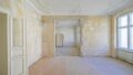 Renovation work on this stately flat has already begun. The bathroom and kitchen have been removed, as have non-load-bearing walls, old fixtures and flooring.