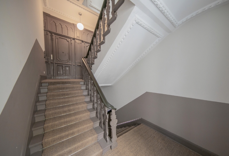 Dabei wurden originaler Deckenstuck sowie Kassettentüren erhalten.