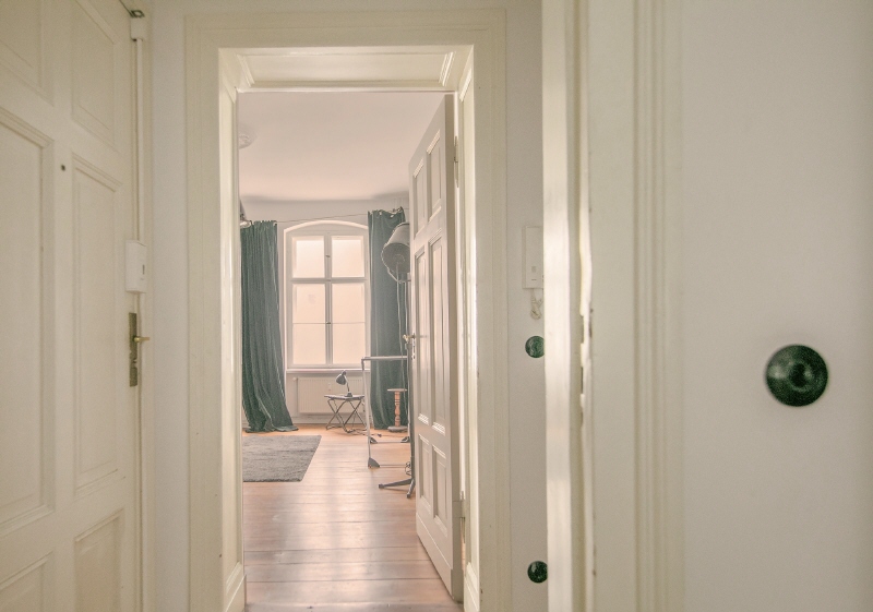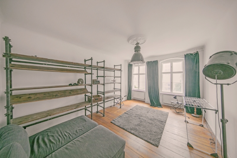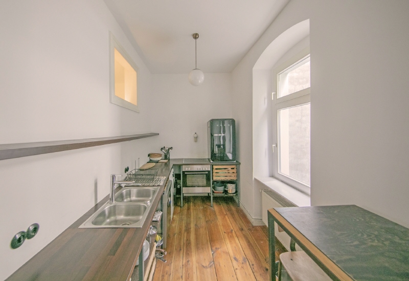 Die historischen, breiten Dielen in der ganzen Wohnung wurden abgeschliffen und sind geölt.