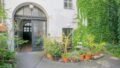 The building is a very beautiful old stucco building and consists of a front house, a coach house, and a transverse building.
