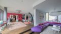 the extension of the living room is the lowered lounge area with a custom-made upholstered suite in Marrakech