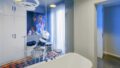 The large bathroom is an en-suite wellness bathroom with a large window, bathtub, shower, bidet….