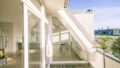 Der private Bereich (Schlafen und Hauptbadezimmer) ist vom Wohnraum her über eine zweiteilige Glasschiebetür und vom Flur aus zu begehen (siehe Grundriss).
