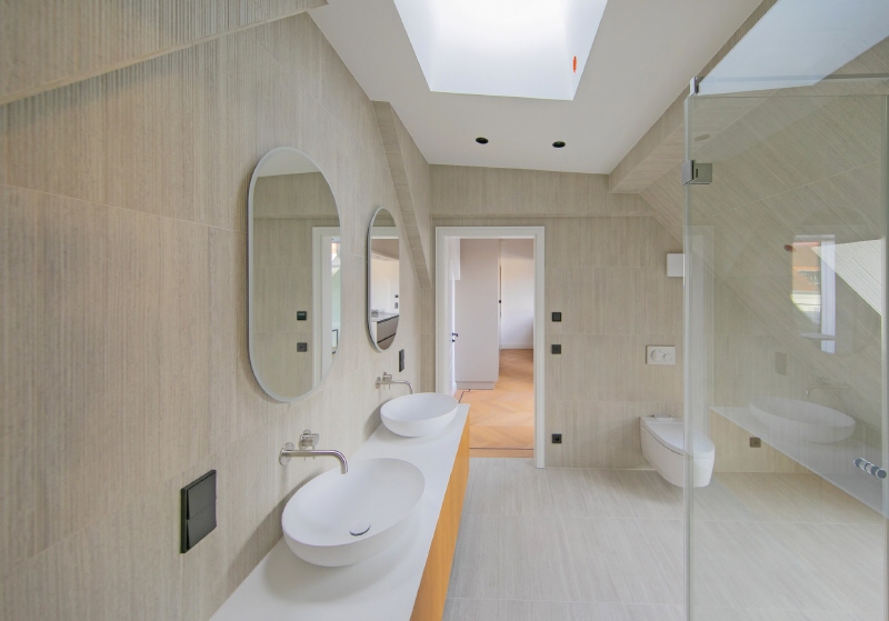 – Badezimmer mit Fenster, Ariostea-Fliesen und Marinier-Armaturen