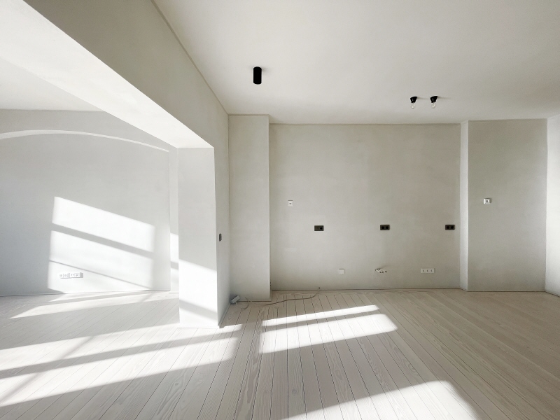 Feinspachtel aus Natursteinmehl an den Wänden.