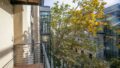 Almost all windows in the apartment are floor-to-ceiling (French windows).