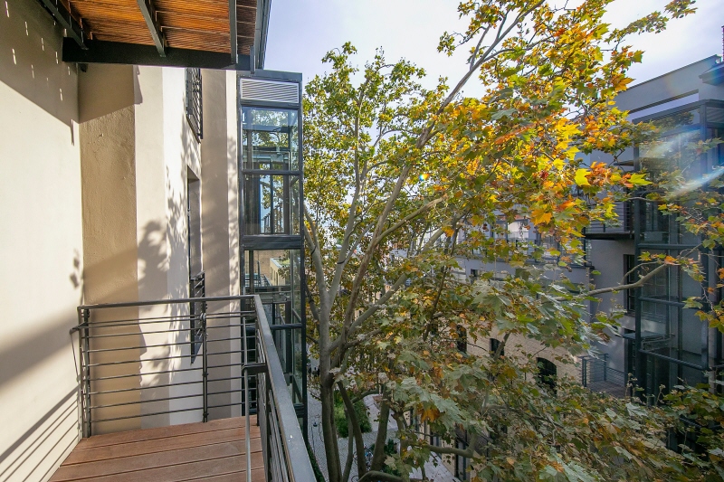 From the apartment and also from the balcony, you have a very nice view to the south of the extremely stylishly designed and landscaped courtyard.