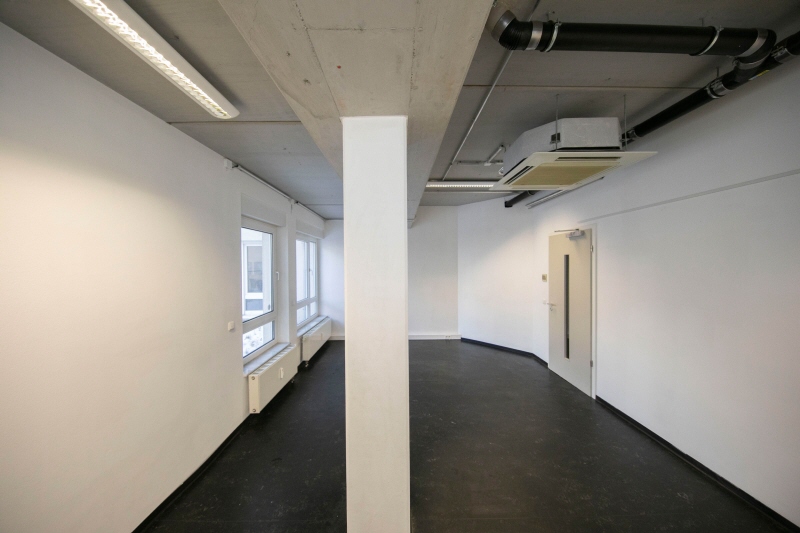 Here is a self-contained small office with a window overlooking the very quiet and large inner courtyard (see photo) The office space itself is 26.21 square meters in size. Together with the kitchen, bathroom, and lounge, which are shared with the other five office tenants on the floor, this amounts to a proportionate usable area of 36.89 square meters.