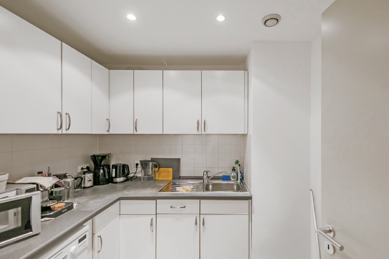 The large entrance area (see floor plan), the kitchen, and the wet area are shared with the other tenants on the floor.