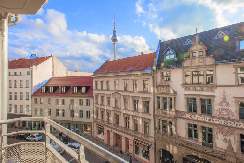 Isolierglas-Fenster (mit einer Süd- Ausrichtung in die Neue Schönhauser Straße) Heizkörper vor dem Fenster