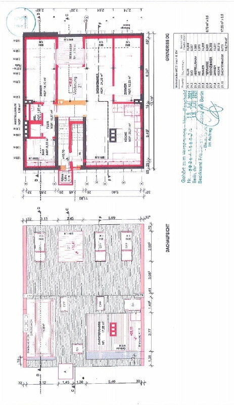 Eine Baugenehmigung für dieses Dachgeschoss liegt bereits vor. Der entsprechende Grundriss, mit einer Aufdachterrasse aus der Baugenehmigung ist dem Exposé beigefügt.
