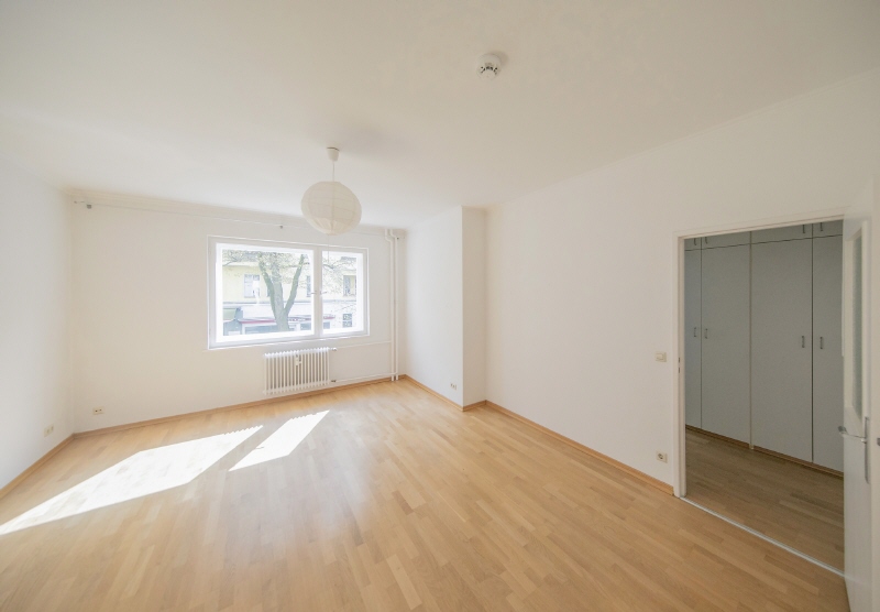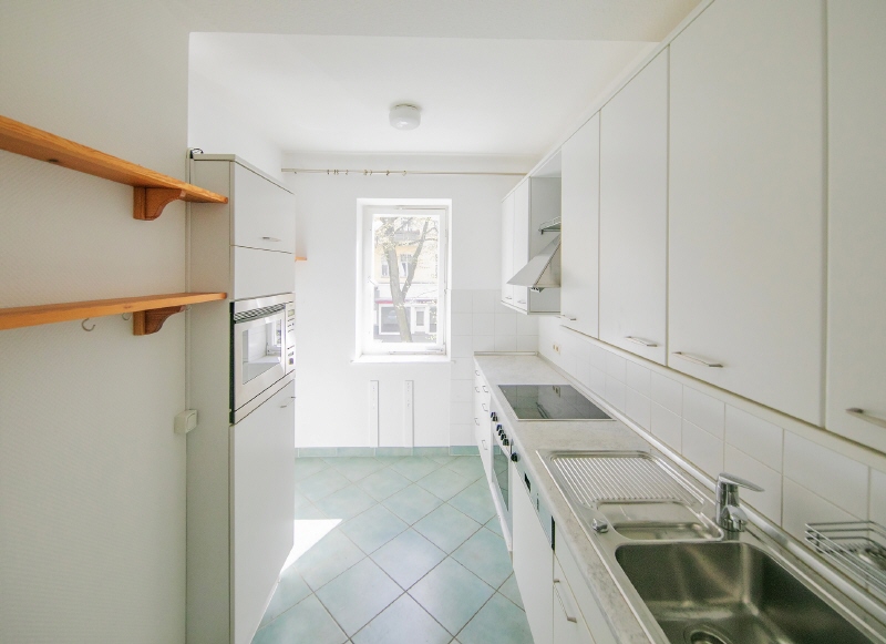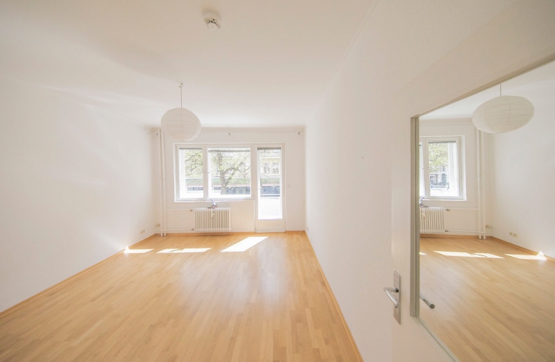 These two small, combined apartments are being sold with a relatively large south-facing balcony and a beautiful view of the street, directly onto Ludwigkirchplatz.