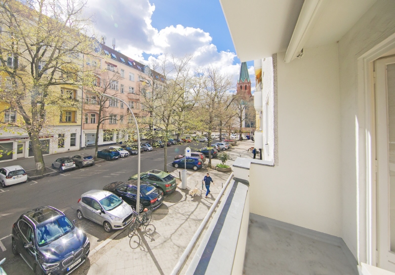Verkauft werden diese beiden kleinen, zusammengelegten Wohnungen mit einem relativ großen Balkon nach Süden und einem schönen Ausblick in die Straße, direkt auf den Ludwigkirchplatz.