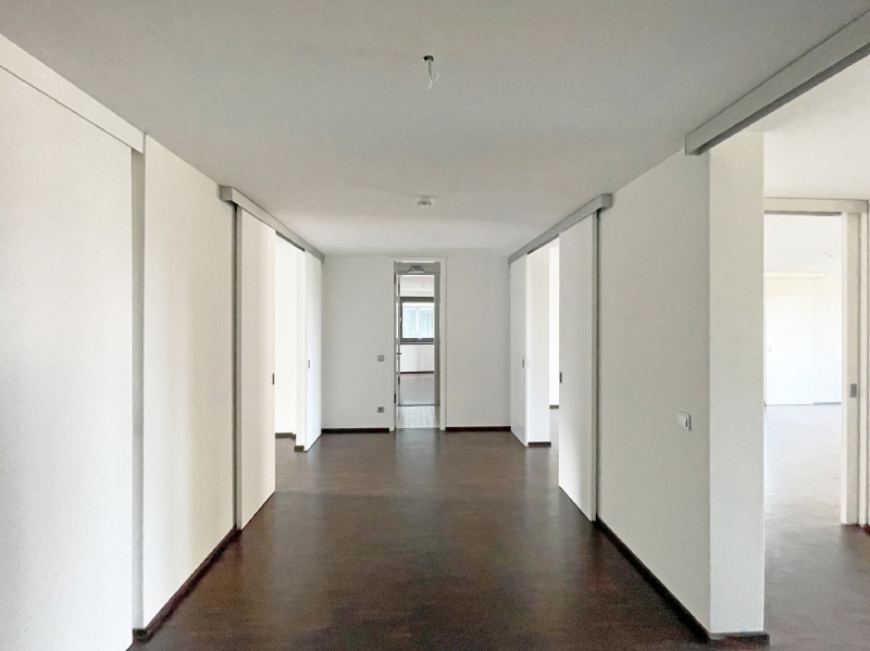 Raumhöhe ca. 2,60 Meter. Voll ausgestattete Einbauküche, schönes Badezimmer mit edlen Sanitär-Objekten. Raumhohe Schiebetüren. Die Wohnung ist schwellenfrei zu erreichen, mit Concierge von Montag bis Samstag, mit Mieterkeller.