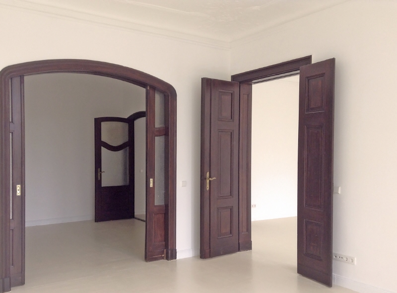 Original room doors and a historic sliding door with decorative fittings