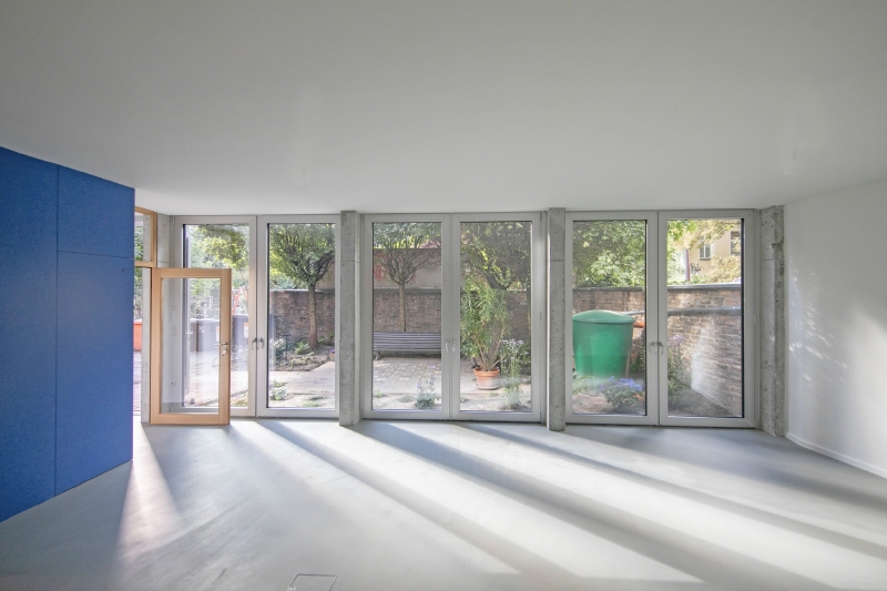 Vermietet wird diese Bürofläche im Erdgeschoss, einer neu errichteten Remise, über 2 Etagen, im Hof. Die Remise ist über den Hauseingang Sredzkistrasse 63 zu erreichen.