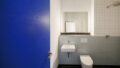Schallhemmende Filzplatten an der Wand zum Sanitärbereich.