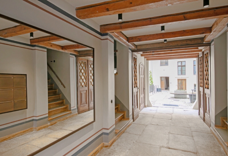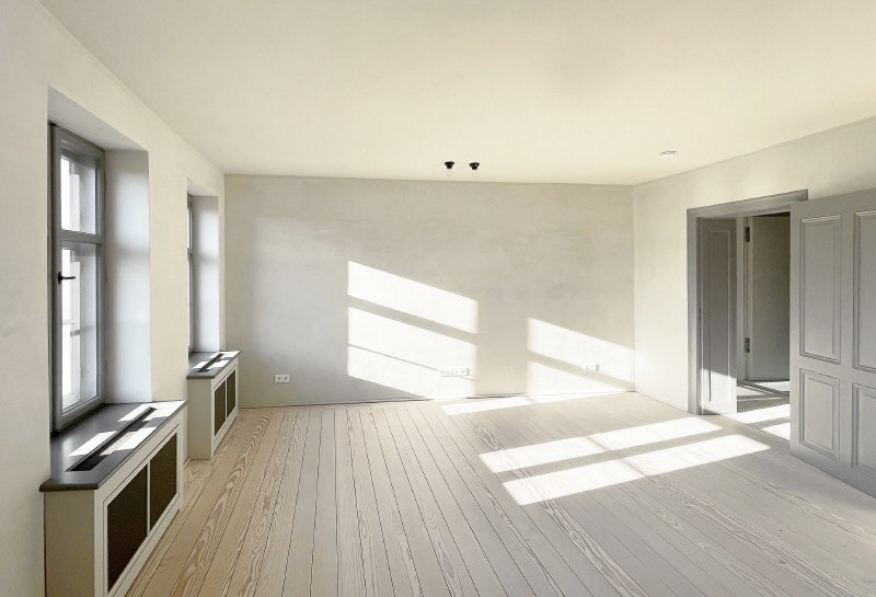 During the high-quality refurbishment, historical elements were preserved in places, which gives the flat its special charm.