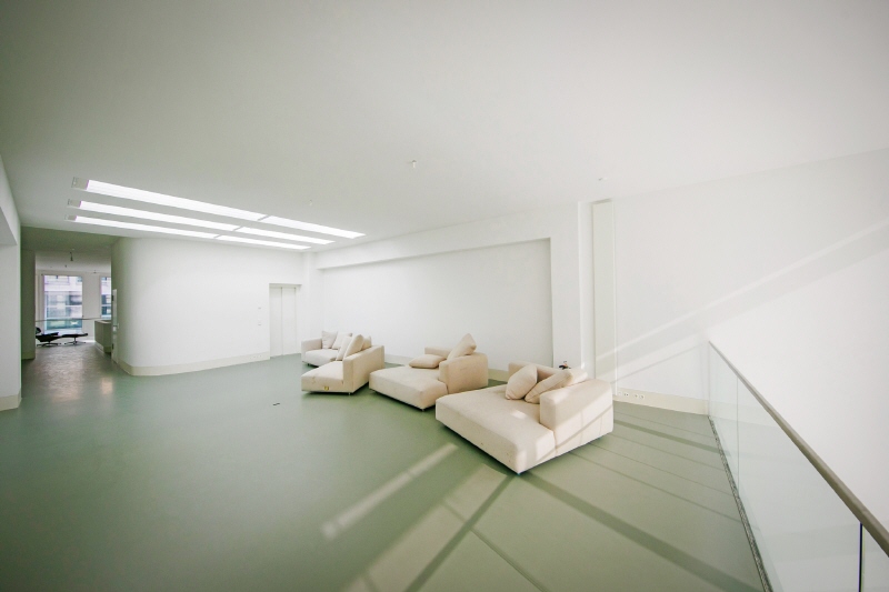 The commercial space has polished concrete screed, which is very pleasant to walk on barefoot. Solid wood Rhodesian teak parquet flooring runs throughout the entire living area. Underfloor heating with convectors in front of the windows on all floors.