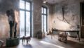 Not to mention the French-style wooden shutters in the bedroom. Natural stone flooring in the bathroom with a freestanding "Falper" bathtub. The washing machine is housed in a custom-made wall cabinet in the bathroom.