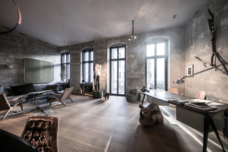 The historic and attractive cast-iron radiators were refurbished. The walls in the living room were deliberately left without smooth plaster and unpainted (see pictures).