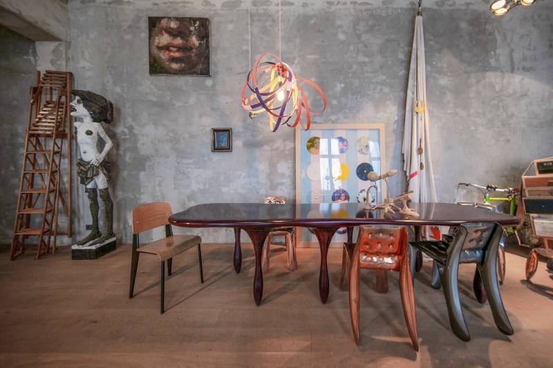 Custom-made fitted kitchen, reminiscent of a piece of furniture, with a beautiful natural stone worktop.